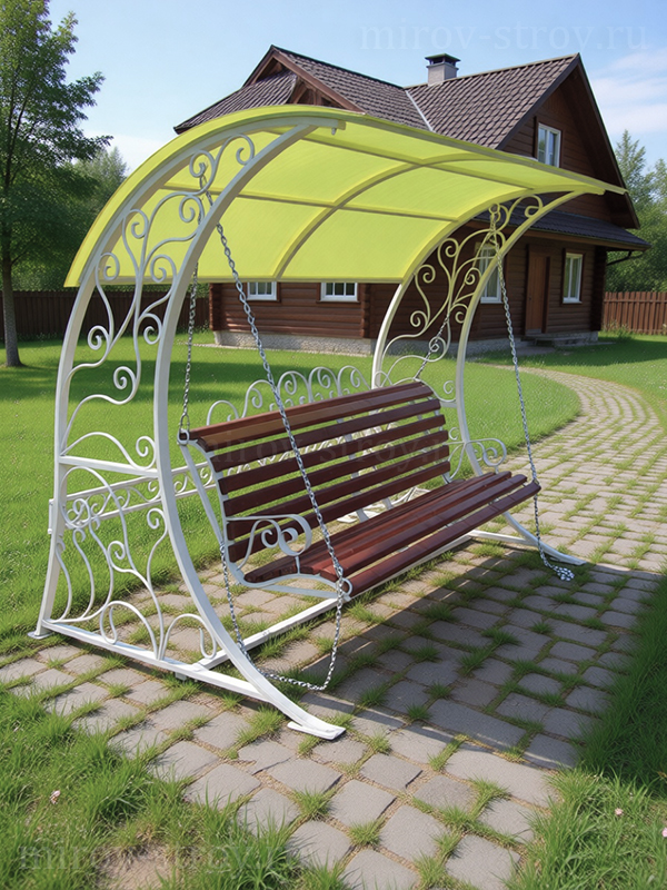 Ставка НДС:Кованая 3-х местная качель с крышей из поликарбоната.