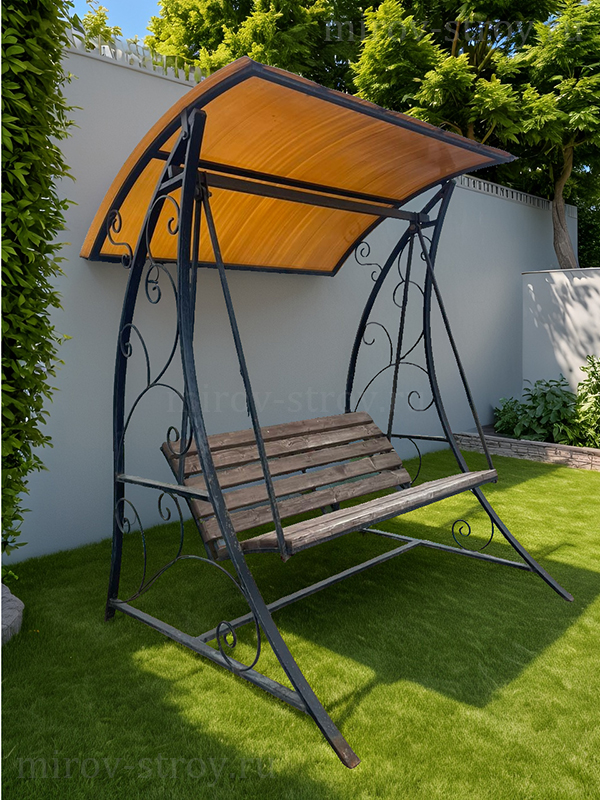 Сиденье длиной 150 см из металлокаркаса и деревянных брусков, обработанных пропиткой.