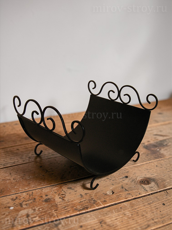 Дровница каминная из металлического листа с коваными элементами