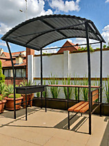 Мангалы с крышей представляют собой компактную функциональную зону для готовки пищи.