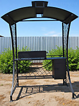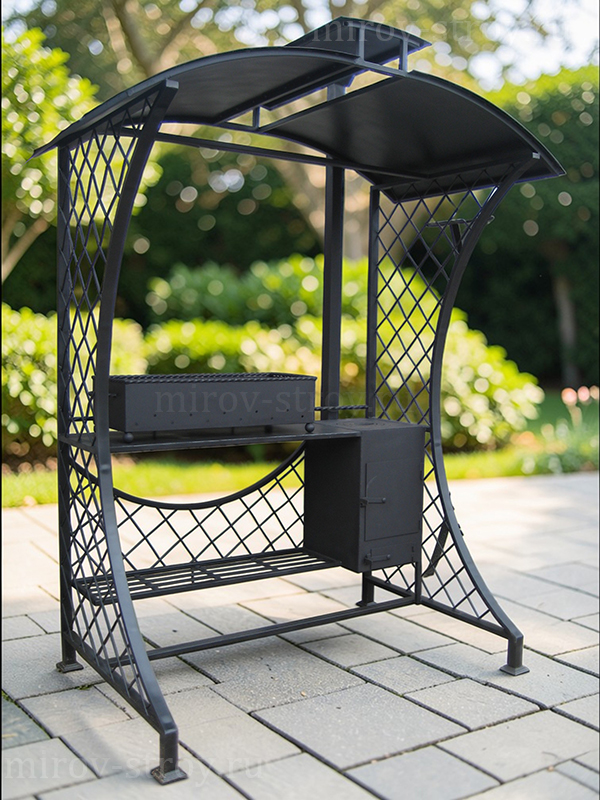 Мангальный комплекс с печкой, оснащенный чугунной плитой с кольцами под казан.