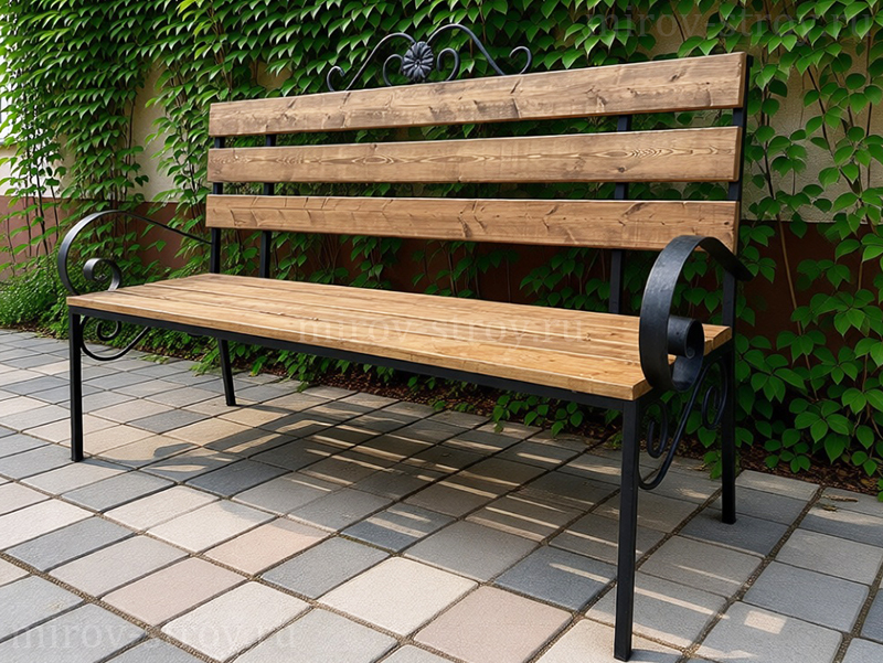 Спинка и сиденье - деревянный брус, обработанный пропиткой.