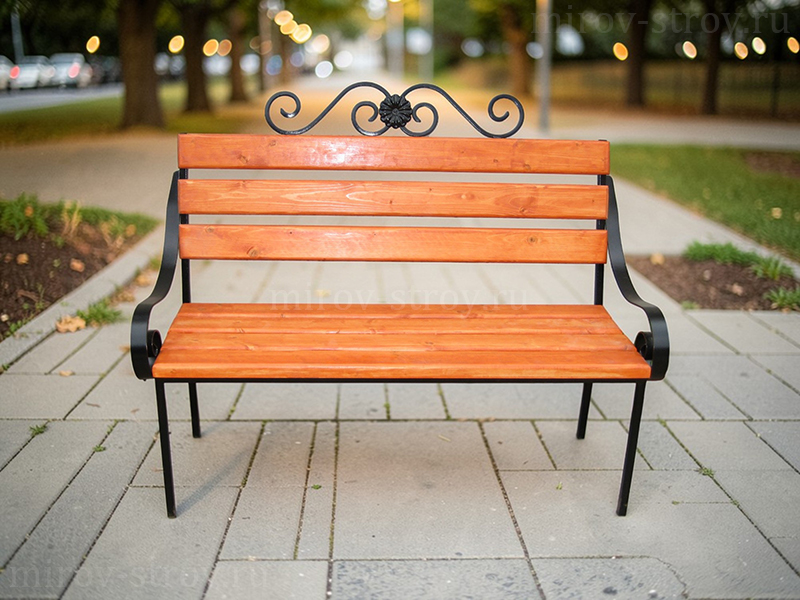 Спинка и сиденье - деревянный брус, обработанный пропиткой.